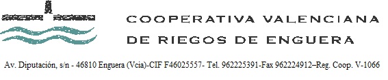 CONVOCATORIA DE ASAMBLEA GENERAL ORDINARIA DE LA COOPERATIVA VALENCIANA DE RIEGOS DE ENGUERA, S. C. L.